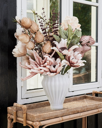 For ekstra effekt kan du vælge vaser i forskellige højder og former for at skabe dynamik i din indretning. Kombiner keramiske, glas- eller marmorvaser for et varieret og personligt udtryk. En stor gulvvase med tørrede pampasgræs kan også være en elegant detalje i en entré eller et hjørne af stuen.