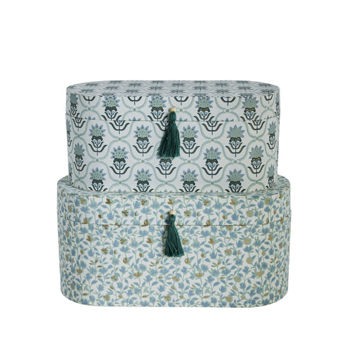 Tilføj et strejf af romantisk charme til din opbevaring med disse ovale bokse fra serien. Beklædt med dekorativt papir i blomstrende mønstre og afsluttet med fine kvaster, er de både funktionelle og æstetiske. Brug dem til at opbevare småting som smykker, bånd eller skriveartikler – eller lad dem stå fremme som en del af din boligindretning.Opdag en fin og feminin opbevaringsserie, hvor funktionalitet møder æstetik i et smukt samspil. Ellen serien består af dekorative opbevaringsbokse i både oval og rektangulær form samt en matchende notesblokholder – alle udført i let karton og beklædt med delikate blomstermønstre i hvid og nuancer. Med fine detaljer som kvaster og harmoniske farver bringer serien et poetisk og ordentligt udtryk ind i dit hjem. Perfekt til kontoret, soveværelset eller som en betænksom gaveidé.