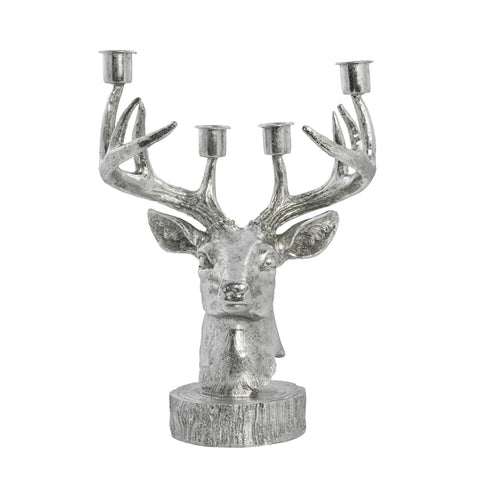 Serafina lysestage hjort H31cm antik sølv