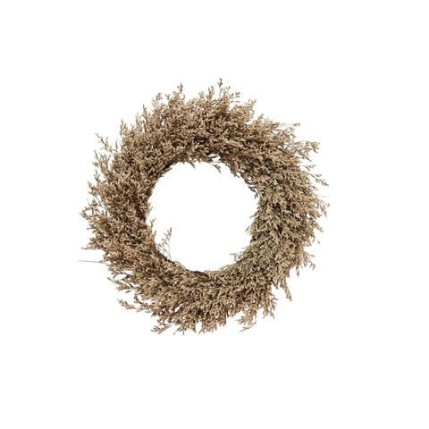 Denne fantastiske Marita krans udstråler en rig og rustik charme med sine græs blade, der skaber en varm og indbydende sæsonbetonet accent. kransen måler D45 cm. Den naturlige tekstur og organiske arrangement giver et elegant, jordnært udtryk, hvilket gør det til et perfekt dekorationsstykke til efterår, vinter eller året rundt. Uanset om det er placeret på en hoveddør, over en pejs eller som et bordcenterpiece, tilføjer denne krans et sofistikeret, naturinspireret touch til ethvert rum. Dens tidløse appel gør den til et ideelt valg for dem, der elsker underspillet elegance med et strejf af sæsonvarme.Produkt: krans