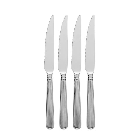Sæt af 4.Løft din borddækning med disse elegante og funktionelle Delia steakknive. Knivene er fremstillet i rustfrit stål med skarpe, takkerede blade, der gør det nemt at skære igennem bøffer, stege og grillede retter. Det tidløse design med klassisk formgivning passer perfekt ind i både moderne og traditionelle bordopdækninger.