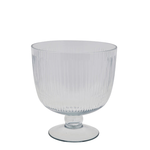Tilfør elegance og lethed til dit hjem med denne stilrene Carla glasvase. Designet med fine lodrette riller og en klassisk fod, kombinerer den moderne æstetik med tidløs charme. Vasen er fremstillet i klart glas og fungerer perfekt både som en dekorativ centerpiece og som en praktisk skål eller beholder til f.eks. blomster, sæsonpynt eller stearinlys.