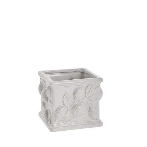 Smuk citron-skjuler fra Lene Bjerre. Fremstillet i hvid og prydet med skulpturelle citroner og blade i et udsøgt relief, forener den tidløst håndværk med et legende, men elegant udtryk. Det detaljerede design tilfører dybde og struktur, mens den monokrome finish giver et skandinavisk præg. Perfekt som et statement-piece i sig selv eller fyldt med frisk grønt og blomster – den indfanger essensen af middelhavscharme blandet med nordisk raffinement.