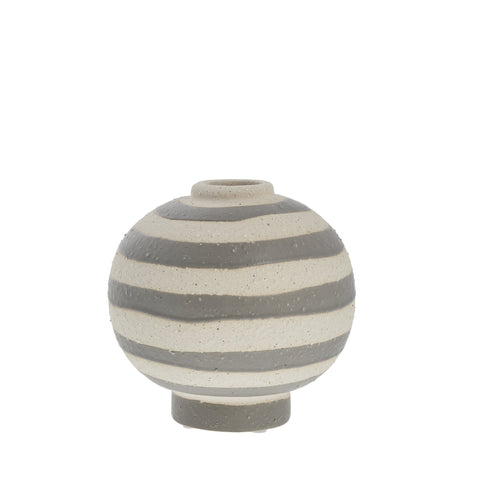 Denne smukke vase har gennemgået en lang fremstillingsproces, for at sikre, at de lever op til det rigtige design og Lene Bjerres standarder. Vasen er belagt med transparant glasur, hvorefter striberne er håndmalet af dygtige kunsthåndværkere.