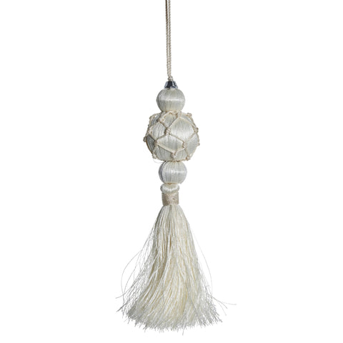 Elegant juleophæng med kvast i den smukkeste råhvid farve. Dette ophæng måler L4xB4xH16 cm.