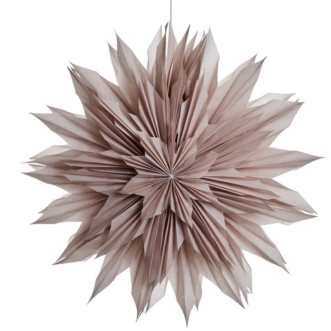 Denne storslåede Palisia stjerneskud dekoration tilføjer et feminint og moderne præg til enhver juledekoration. Denne dekoration måler L60xB60 cm og er lavet af papir. Med et intrikat, lagdelt design og skarpe, strålende spidser skaber den en dynamisk og iøjnefaldende look. Den bløde, neutrale tone fremhæver dens elegante appel, hvilket gør den til et alsidigt element til festlige guirlander eller som statement vægdekoration. Uanset om den hænges op alene eller sammen med andre ornamenter, bringer denne unikke dekoration en følelse af tekstur, dimension og sofistikation til din jul.Produkt: dekoration
