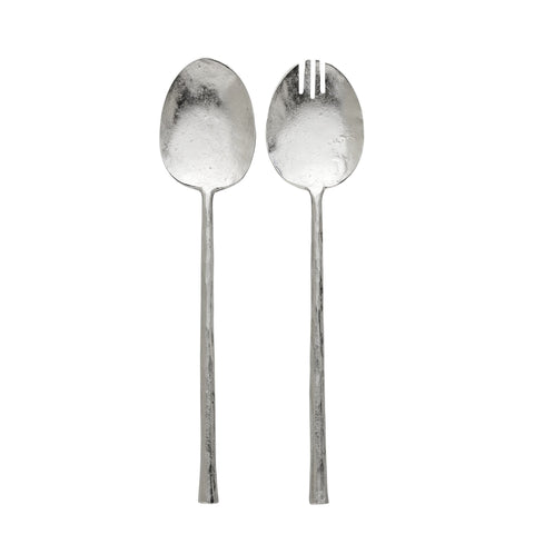 Dette Demilla salatbestik er fremstillet i en elegant og rustik designstil, der forener funktionalitet og æstetik. Med en smuk, håndhamret finish og organiske former passer sættet perfekt ind i både moderne og klassiske borddækninger. Det smukke og solide håndværk gør det nemt at servere lækre retter med stil. En dekorativ detalje, der løfter din servering og tilføjer et eksklusivt præg til middagsbordet.Produkt: salatbestik