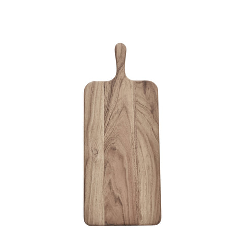 Dette elegante skærebræt i naturtræ er både funktionelt og dekorativt. Med sit lange, slanke design og integrerede håndtag er det perfekt til servering af brød, tapas eller snacks. De naturlige årer i træet gør hvert bræt unikt.Oplev Merle serien af naturlige serveringsprodukter i massivt træ. Serien rummer alt fra klassiske skærebrætter og runde serveringsfade til etageopsatser og dekorative serveringsborde med ben. Fælles for alle produkter er den varme træstruktur, håndværksprægede finish og funktionelle formgivning – skabt til både daglig brug og smukke bordopdækninger. Hver del tilfører dit hjem et strejf af natur og ro.