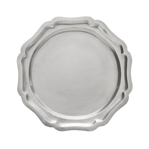 Elegant dækketallerken med dekorativ, bølget kant – perfekt til servering, dekoration eller som base for lys og vaser. Den matte overflade tilfører karakter og varme til hjemmet.