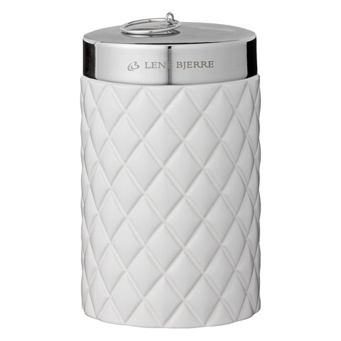 Eksklusiv hvid keramik krukke med harlekin design og låg fremstillet af . Denne Portia krukke måler H14xØ9 cm., kan indeholde 50 cl. og er perfekt til opbevaring af småting på badeværelset, hvor den både vil være praktisk og dekorativ på én og samme tid. Brug den eventuelt til smykker, vatpinde, vatrondeller eller til lige hvad du har lyst til.