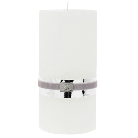 Det fine bloklys måler H20 cm og Ø10 cm og har en brændetid på timer. Lyset er designet med et fint bånd med logo, som du kan lade sidde eller fjerne om du vil.