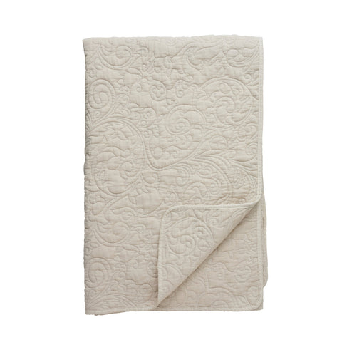 Omgiv dig med komfort med dette dejlige tæppe fremstillet af ultrablødt polyester for en hyggelig følelse. Det charmerende quiltede feminine mønster tilføjer et strejf af elegance, mens den stenvaskede finish sikrer, at hvert tæppe er unikt smukt. Perfekt til de kølige sommernætter eller som en stilfuld accent til din boligindretning.