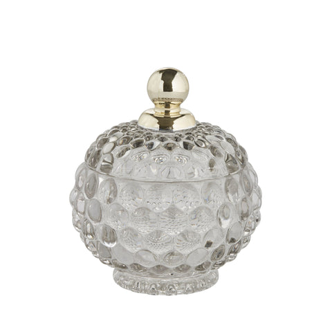 De overdådige glaskrukker med gulddetaljer og reflekterende glas kan bringe romantik og elegance ind i ethvert rum. Det er perfekt både i entréen til nøgler, på badeværelsket til vatrondeller eller på natbordet til smykker.