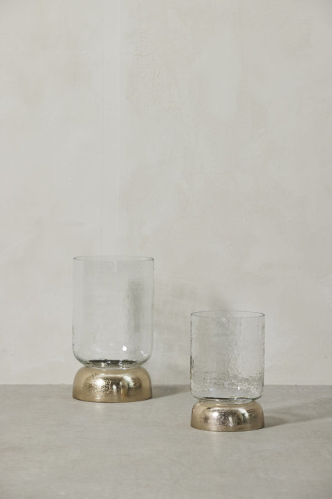 Sandia er lavet af aluminium og glas med fantastiske gulddetaljer. Brug denne dekorative lysestage i din stue, lyset skaber et blødt og oplyst skær, der ser smukt ud gennem glasset og skaber en rolig og afslappet stemning i hjemmet.