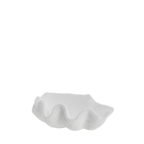 Elegant Shella dekorationskål formet som en muslingeskal og lavet af hvid polyresin.