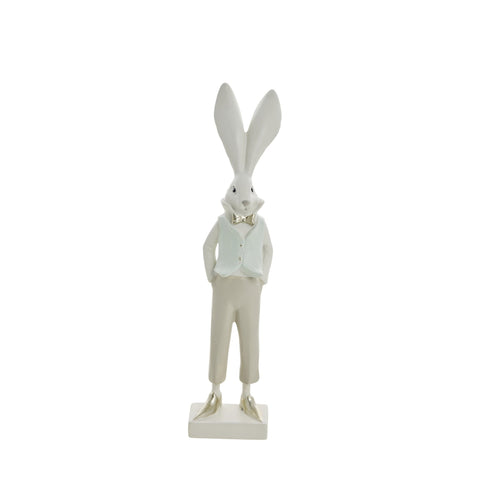 Denne charmerende påskehare i fin vest og bukser vil helt sikkert bringe et smil frem på dine læber. Påskeharen er lavet af polyresin, som nemt kan tørres over med en klud. Denne påskehare dekoration er perfekt til påske og fås både som en dame og mand i de traditionelle påskefarver, dekorationen er inspireret af rockabilly stilen fra 1950’erne og vil bringe glæde i ethvert rum.