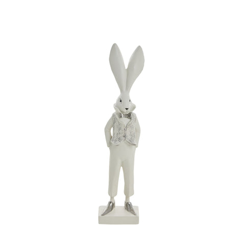 Denne charmerende påskehare i fin vest og bukser vil helt sikkert bringe et smil frem på dine læber. Påskeharen er lavet af polyresin, som nemt kan tørres over med en klud. Denne påskehare dekoration er perfekt til påske og fås både som en dame og mand i de traditionelle påskefarver, dekorationen er inspireret af rockabilly stilen fra 1950’erne og vil bringe glæde i ethvert rum.