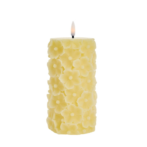 Tilføj et romantisk og stemningsfuldt udtryk til dit hjem med dette dekorative LED bloklys lavet af paraffin fra Lene Bjerre. Lyset er dekoreret med fine blomster, der giver et smukt og feminint udtryk. Perfekt til både hverdag og særlige anledninger, hvor du ønsker at skabe en varm og hyggelig atmosfære.