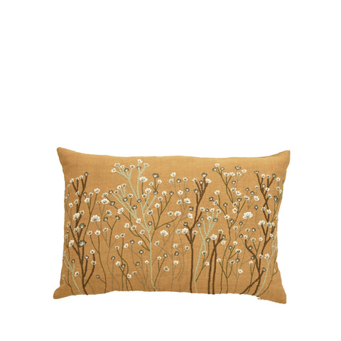 Skab varme i din indretning med dette smukke Elia pudebestræk fra Lene Bjerre. Puden er rigt broderet med delikate blomstergrene i naturinspirerede nuancer, som elegant står i kontrast til den varme okker baggrund. En dekorativ pude, der inviterer naturen helt ind i hjemmet.Betrækket passer til vores L60xW40 cm. dunpude, som kan tilkøbes separat.