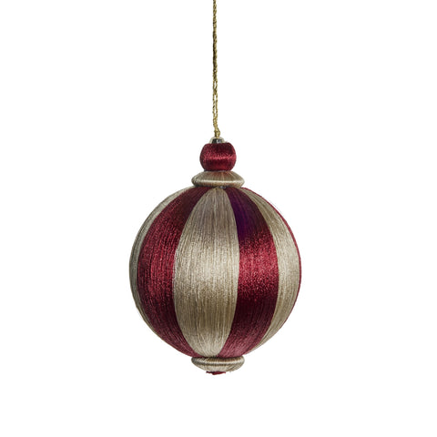 Smuk Agnes stribede dekoration i farven mørkerød med målene L10xW10 cm. Dette iøjnefaldende ophæng har flotte striber af farverige tråde, der skaber et tekstureret, tredimensionelt design. Den flotte kombination af dristige og subtile nuancer giver det et legende, men elegant look, perfekt til at tilføje et strejf af farve og stil til dit juletræ eller dine festlige dekorationer. Dets unikke design tilfører en hyggelig, klassisk stemning til din juleudsmykning, hvilket gør det til en enestående tilføjelse til din julekollektion.Produkt: dekoration