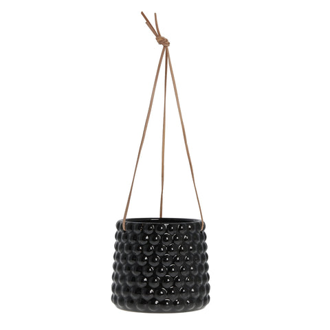 Denne smukke Dotsie keramiske hængekrukke med tre fine lædersnore til ophængning skaber en skøn stemning i ethvert hjem. Løft dine planter eller blomster og mærk en vidunderlig atmosfære i rummet.