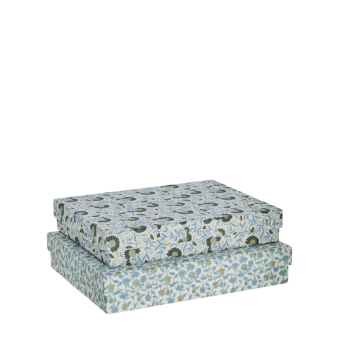 Disse elegante rektangulære bokse fra Ellen serien kombinerer organisering og skønhed. De er perfekte til kontorartikler, fotos, breve eller andre småting, du gerne vil have styr på – samtidig med at de pynter i reolen eller på skrivebordet. De diskrete mønstre i hvid og toner skaber et let og feminint udtryk.Opdag en fin og feminin opbevaringsserie, hvor funktionalitet møder æstetik i et smukt samspil. Ellen serien består af dekorative opbevaringsbokse i både oval og rektangulær form samt en matchende notesblokholder – alle udført i let karton og beklædt med delikate blomstermønstre i hvid og nuancer. Med fine detaljer som kvaster og harmoniske farver bringer serien et poetisk og ordentligt udtryk ind i dit hjem. Perfekt til kontoret, soveværelset eller som en betænksom gaveidé.