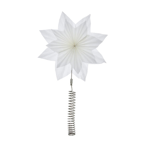 Denne elegante topstjerne tilføjer et strejf af sofistikering og charme til dit juletræ. Med et smukt foldet papirstjernedesign i en blød, neutral tone skaber det et delikat men iøjnefaldende fokuspunkt. Den vedhæftede metalspringbase sikrer en sikker pasform øverst på træet, hvilket muliggør en problemfri placering. Dens minimalistiske æstetik komplementerer både traditionel og moderne indretning og gør det til et tidløst element i sæsonens fejring.Produkt: